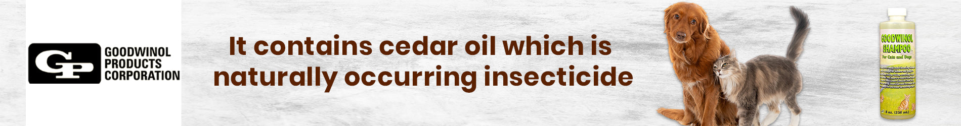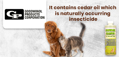 - GOODWINOL SHAMPOO:Â It is an all-purpose, gentle formula designed for cats, dogs, puppies, and kittens. Infused with natural cedar oil, a plant-based insecticide, it helps repel pests while soothing skin irritation. This shampoo effectively relieves itching, flaking, and scratching, promoting a healthier coat. Safe for regular use, it can be used on pets as young as six weeks old.