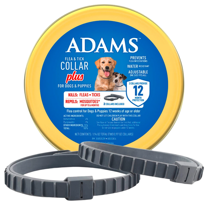 Adams Flea & Tick Collar Plus For Dogs & Puppies Prevents Infestations By Killing Adult Fleas And Adult Ticks For Up To 6 Months Per Collar. Our One-size-fits-all Flea And Tick Collar Ensures You Are Receiving Top-of-the-line Flea And Tick Treatment For Small Dogs, Medium Dogs, And Large Dogs Alike. Additionally, With Two Collars Per Container, You Are Buying A Year Of Headache-free flea tick control for dogs. The Active Ingredients In Adams Flea & Tick Collar Plus For Dogs & Puppies Provide Continuous, Long-lasting Protection Against Fleas, Ticks, And Mosquitoes*(*excluding California) For Up To 6 Months Per Collar. With The Added Benefits Of Repelling Mosquitoes* (*excluding California) And Being Water-resistant, You Know You Are Giving Your Dog The Best When Using An AdamsĀ flea & tick collar for dogs & Puppies. With 5% Of Fleas Living On Your Dog And The Remaining 95% Living In Your Home Or Yard, It Is Important To Also Address The Infestations That Can Be Occurring In Your Home And Yard. Adams dog products Are Designed To Provide You With The Power To Prevent Pests On Your Pet, In Your Home, And Your Yard.