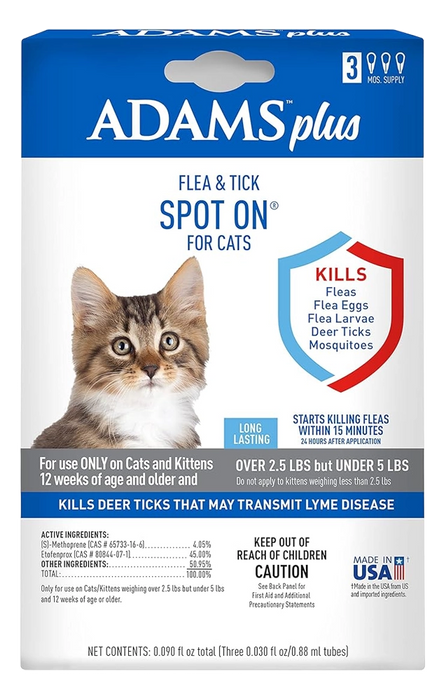 Adams Plus Flea & Tick 3 Month Supply Spot On for Cats & Kittens Over 2.5-lb
