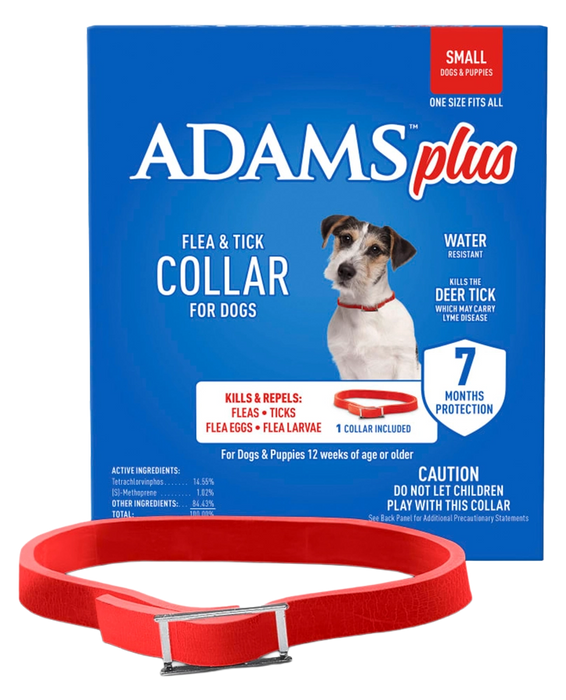 The Adams Plus Flea & Tick Collar For Dogs Is Perfect For Smaller Dogs. It Provides Quick Relief From Biting Fleas And Ticks And Continuous Protection For Up To 7 Months. Our Collar Prevents Infestation By Killing 3 Stages Of The Flea And Tick Life Cycles. Adams dog Collar Provides One-step flea tick control for dogs And Prevents Reinfestations. Even When Wet Or Completely Submerged, The Collar Continues To Be Effective. This Collar Is Also Fully Adjustable And Water-resistant.