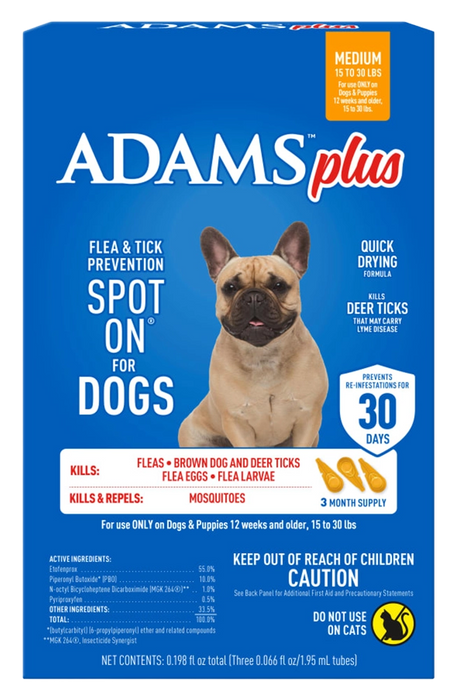 Adams Plus Flea & Tick 3 Month Supply Prevention Spot On for Medium Dogs 15 to 30 lbs