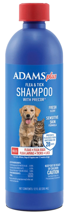 Adams Plus Flea & Tick Shampoo with Precor is a sensitive skin flea and tick shampoo that kills fleas, ticks, and lice on contact. Our rich, creamy formula cleans and conditions your pet's coat leaving it soft, shiny, and manageable. Adams dog shampoo is enriched with soothing aloe vera, lanolin, and oatmeal with a pleasant, fresh scent for the best flea tick control for up to 28 days. Also don't forgot to other Adams Plus Flea and Tick Shampoo for your Pet!