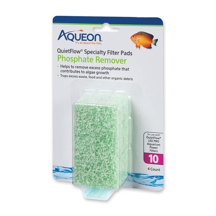Keep your aquarium water clean and clear with Aqueon QuietFlow 10 Specialty Filter Pads. These filter pads are designed to effectively remove excess phosphate from your aquarium water, helping to reduce algae growth and maintain water quality. Each pack contains 4 filter pads that are specifically sized for use with the Aqueon QuietFlow 10 filter system. The pads are easy to install and replace, ensuring hassle-free maintenance. With Aqueon's trusted quality and performance, you can rely on these specialty filter pads to help create a healthy and thriving aquatic environment for your fish.