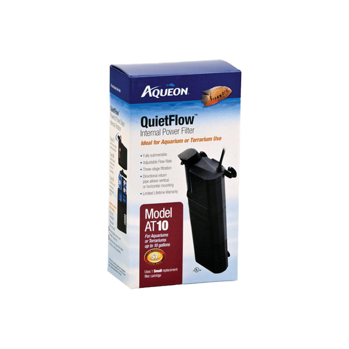 The Aqueon QuietFlow AT10 Internal Power Filter is a great choice for keeping small aquariums clean. This Aqueon Power Filter for Aquarium is fully submersible and very easy to position inside your tank. As one of the best fish tank filters, it provides effective filtration to keep your water clear.