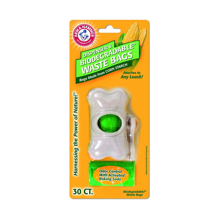 Arm & Hammer Bone Dispenser & Disposable Corn Starch Waste Bags White/Green One Size 30 Count