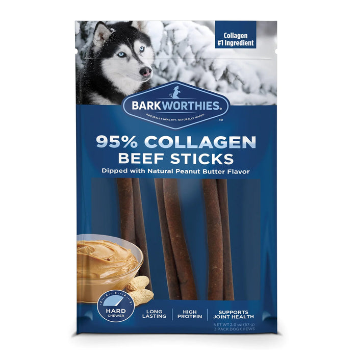 Barkworthies 6" Collagen Peanut Butter Flavor Beef Stick Small Dog Chews 3 Count 2-oz