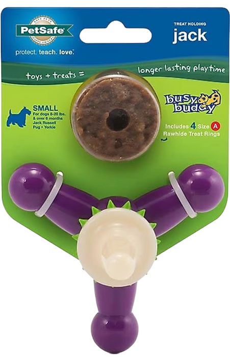 The Busy Buddy Jack is a durable and rewarding toy designed to keep your dog playing longer. This tough Busy Buddy Dog Chew Toy holds replaceable treat rings that your dog earns as they chew, providing a delicious incentive. Many owners feel it is one of the best dog toys for preventing boredom and reducing destructive behaviors. The unique jack shape is easy for dogs to hold with their paws for a satisfying chew session. You can trust the high-quality design of this Busy Buddy Dog Chew Toy to provide a safe experience. The combination of durable nylon and rubber offers a varied texture, while the treat rings add motivation. This makes it an effective tool for redirecting chewing habits. The toy is also easy to load with treats and simple to clean.