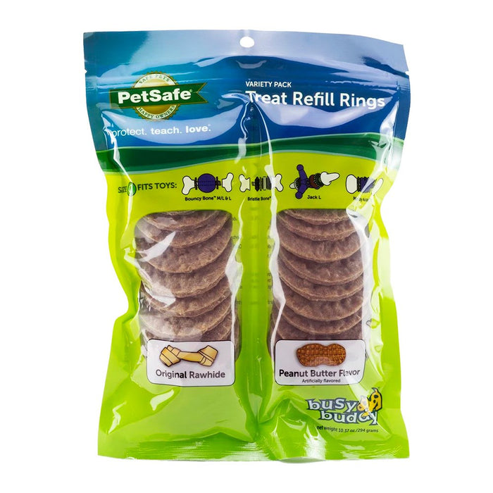 Busy Buddy Dog Treat Refill Rings Original Rawhide & Peanut Butter Variety Pack Size C 10.37-oz