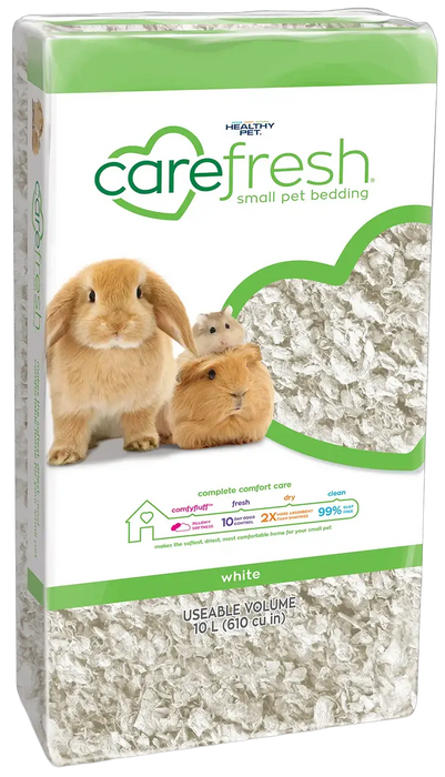 Make your small pet happy with a soft, clean, and cozy home using Carefresh Complete Comfort White Paper Bedding. Made from natural paper fibers called Comfyfluff™, this ultra-absorbent and pillowy soft bedding is designed specifically for small animals such as rabbits, guinea pigs, hamsters, gerbils, mice, chinchillas, and ferrets. It offers superior 10-day odor control to keep your pet's habitat smelling fresh and reduces cleaning frequency. The 99% dust-free bedding doesn't only provide a healthier respiratory environment for your pets but also an easier cleanup for you making it a great bedding for small animals.
