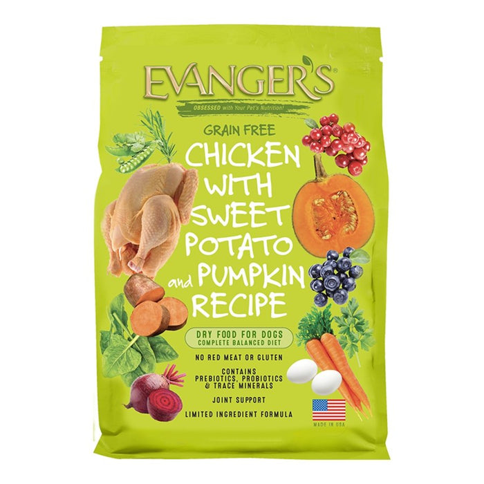 Evanger's Grain-Free Chicken, Sweet Potato & Pumpkin Dry Dog Food is specially formulated to meet the nutritional standards established by the AAFCO nutrient profiles, making it suitable for dogs of all life stages. Evanger's dry dog food is a complete and balanced recipe that provides essential proteins, vitamins, and minerals to support overall health, growth, and energy needs. Its a best dry dog food ever you will received.