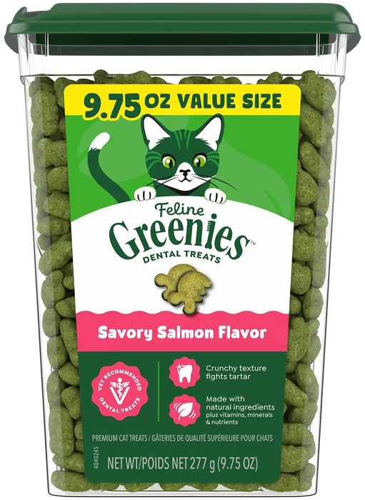 FELINE GREENIES™ Dental Treats are formulated for cats 1 year of age or older. For a healthy dental benefit, feed a 10 lb adult cat 8 treats, two times per day in conjunction with your cat's regular diet. Adjust the amount of main meal to compensate for calories delivered by treats. Always monitor your pet while feeding treats. Provide fresh drinking water at all times and see your veterinarian regularly. To help maintain freshness, we recommend sealing the bag tightly and storing in a cool, dry location.