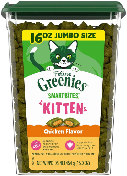 Made for kittens during their important growing stage, these tasty snacks mix essential nutrients with a flavour kittens love, helping support healthy growth. Each bite has a crunchy outside and a soft, creamy centre that kittens enjoy. These Greenies Treats do more than satisfy cravings—they help with brain and eyesight development, boost the immune system, and keep teeth clean. For safe, healthy, and tasty chewy treats for cats, this vet-trusted option is perfect for kittens 8 weeks and older.