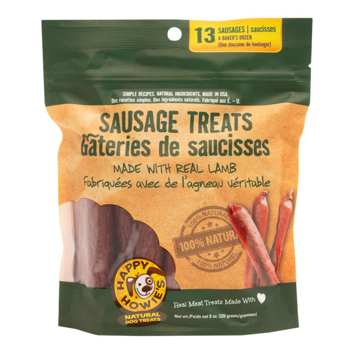 4-inch Lamb Sausage Bakers Dozen (13 count) – This slow-cooked lamb sausage treat is an excellent way to reward your dog. Made in the USA with natural ingredients and gluten-free rice flour stuffed in an edible casing just like in a real deli. *Please note that 4-inches is the pre-cooked length.