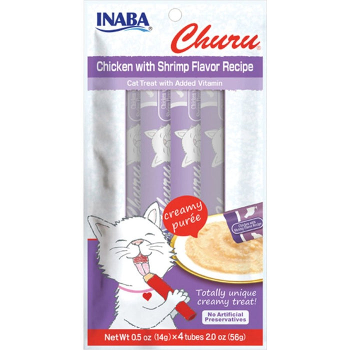 Inaba Churu Creamy Purée Lickable Cat Treats Chicken with Shrimp Recipe 0.5-oz Tubes 4 Count
