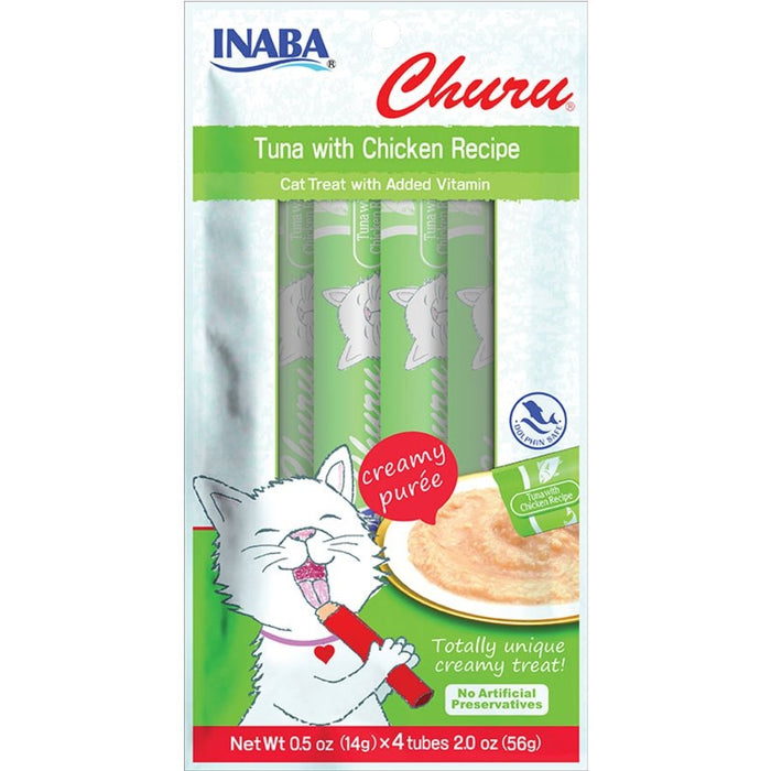 Inaba Churu Creamy Purée Lickable Cat Treats Tuna with Chicken Recipe 0.5-oz Tubes 4 Count