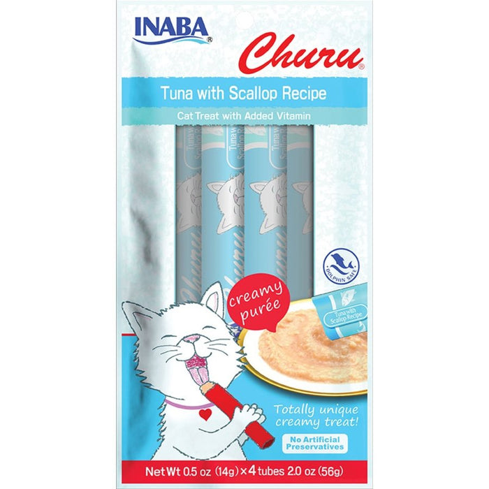 Inaba Churu Creamy Purée Lickable Cat Treats Tuna with Scallop Recipe 0.5-oz Tubes 4 Count
