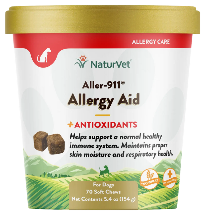 NaturVet Aller-911 Allergy Aid Plus Antioxidants Soft Chews for Dogs 70 Count 5.4-oz