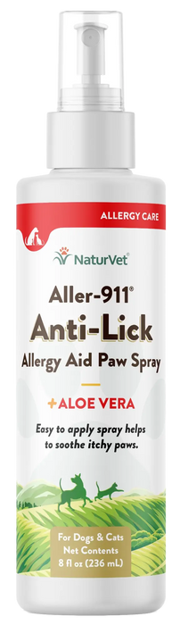 NaturVet Aller-911 Anti-Lick Allergy Aid Paw Spray for Dogs & Cats 8-oz