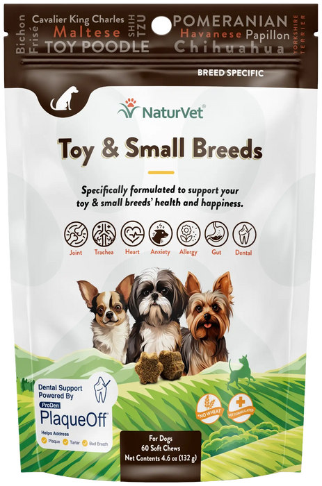 NaturVet Breed Specific Toy & Small Breeds Soft Chew Supplement for Dogs 60 Count 4.6-oz