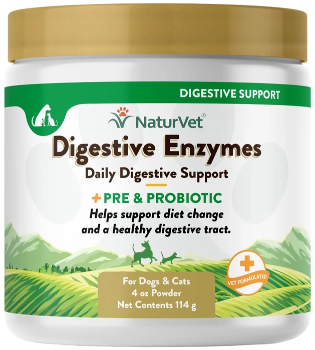 NaturVet Digestive Enzymes Plus Pre and Probiotic Powder for Dogs & Cats 4-oz