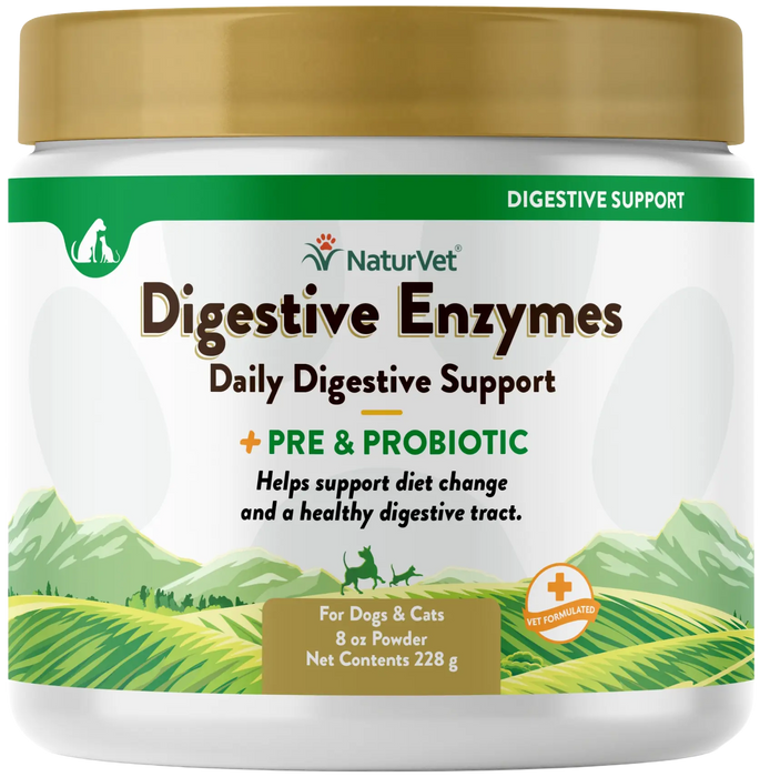 NaturVet Digestive Enzymes Plus Pre and Probiotic Powder for Dogs & Cats 8-oz