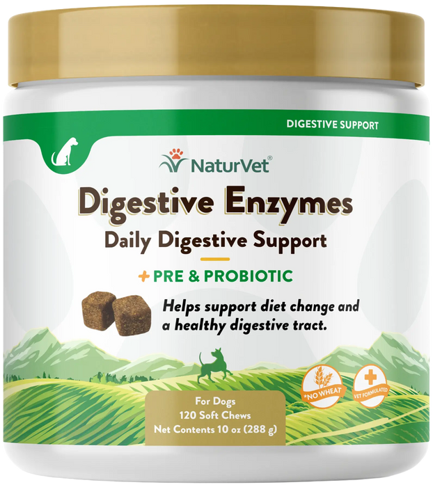 NaturVet Digestive Enzymes Plus Pre and Probiotic Soft Chews for Dogs 120 Count 10-oz