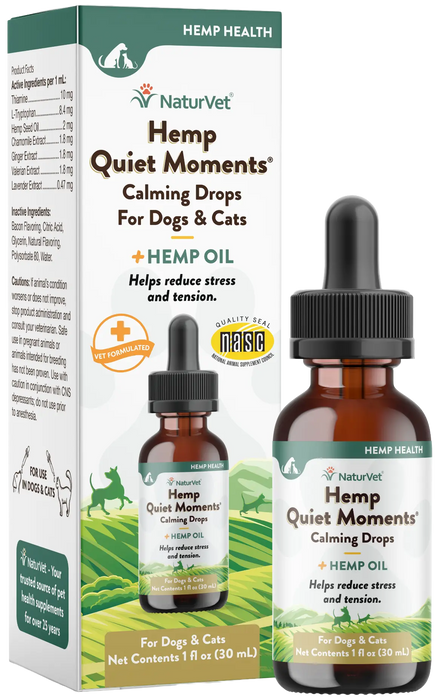 NaturVet Hemp Quiet Moments Calming Drops for Dogs & Cats 1-oz