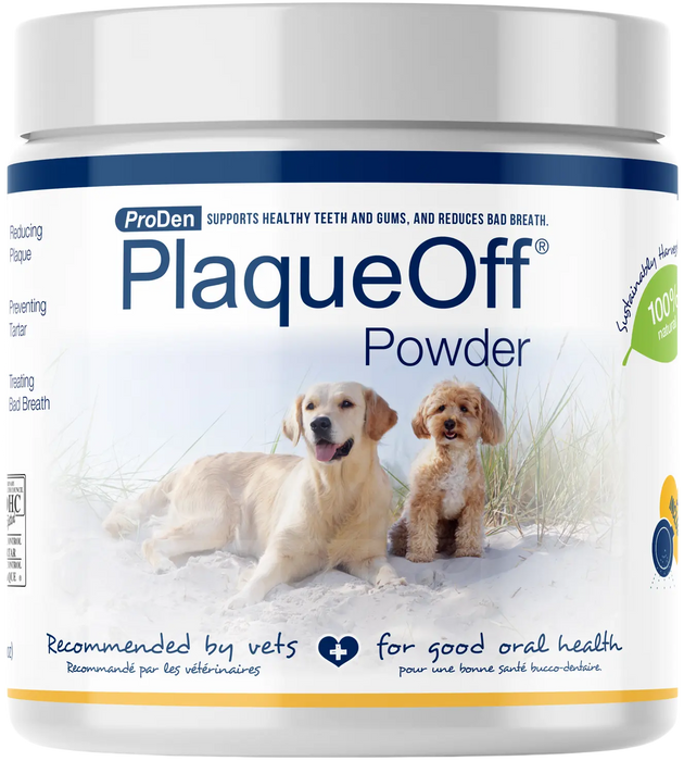 NaturVet ProDen PlaqueOff Powder for Dogs is a highly effective natural supplement specially designed to enhance your dog's dental health. It is made from sustainably harvested Norwegian seaweed (Ascophyllum nodosum). This NaturVet powder is rich in natural iodine and essential vitamins for dogs, making it an excellent choice for supporting oral and overall wellness.