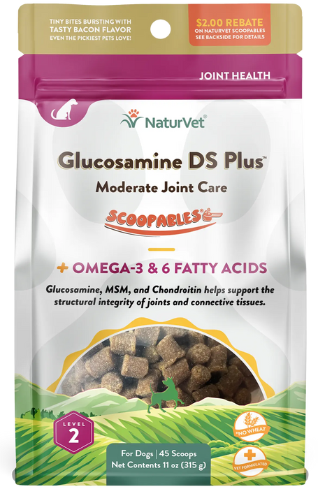 The NaturVet Scoopables Glucosamine DS Plus Level 2 is an easy way to support your dog's joint health. This is a very effective product from NaturVet for dogs, formulated to help adult dogs with moderate joint needs. As a top choice among joint supplements for dogs, it helps maintain healthy cartilage and joint function. You can trust NaturVet for dogs to help keep your pet active and comfortable.