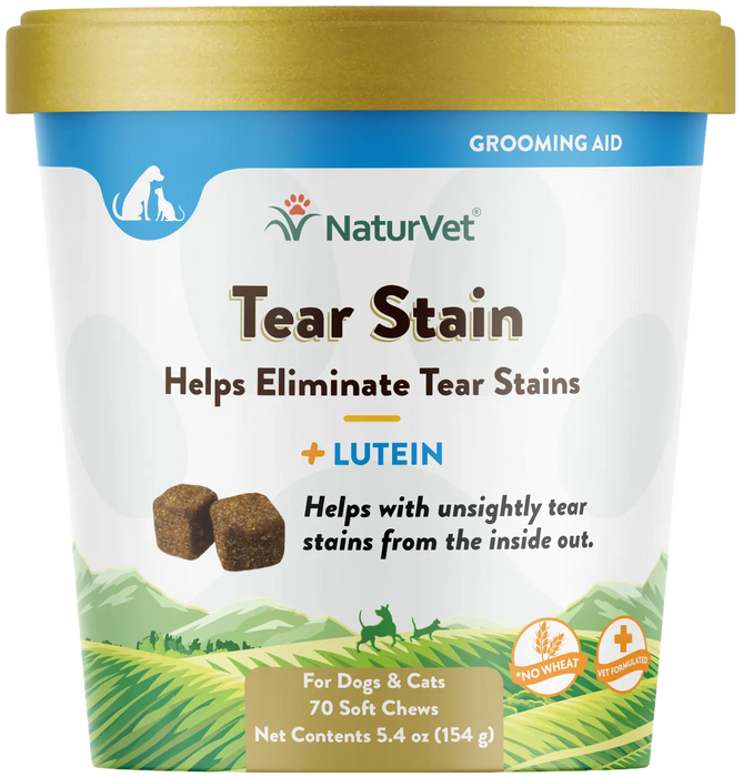 NaturVet Tear Stain Supplement Soft Chews are formulated for dogs and cats over the age of 12 weeks. These Soft Chews for Dogs and Cats help support the immune system and lubricate mucous membranes, effectively addressing unsightly tear stains from the inside out. These veterinarian-formulated chews offer a convenient solution to maintain your pet's eye health and reduce tear staining.