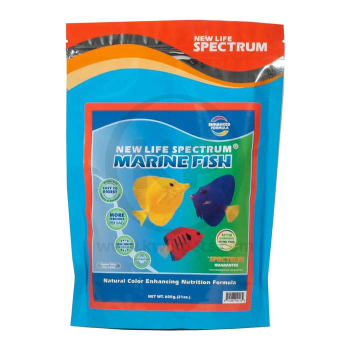 New Life Spectrum Marine fish food pellets is a marine fish formula specially designed to meet the nutritional needs of saltwater aquariums — omnivores, herbivores, and carnivores. This full spectrum fish food provides complete, balanced daily nutrition, including marine-sourced protein and aquatic veggies for marine fish. Enriched with vital nutrients, including vitamins and minerals, this new life spectrum marine fish food boosts the immune system and helps resist diseases common in aquariums.