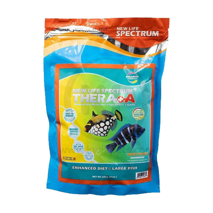 New Life Spectrum Thera +A Pellets Fish Food is a premium fish diet specially formulated for the health and color of Aquarium marine life. Thera fish food includes added Omega-3 and higher protein that ensures that even if your stressed or newly acquired fish don’t have a full appetite, they get what they need. This diet helps resolve certain nutrient-deficient issues without any need for medications.