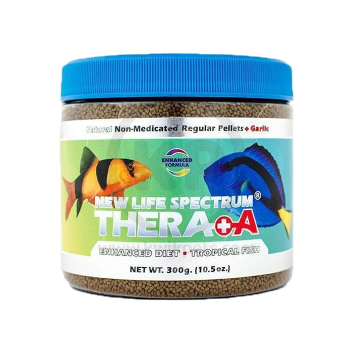 New Life Spectrum Thera +A Pellets Fish Food is a premium fish diet specially formulated for the health and color of Aquarium marine life. Thera fish food includes added Omega-3 and higher protein that ensures that even if your stressed or newly acquired fish don’t have a full appetite, they get what they need. This diet helps resolve certain nutrient-deficient issues without any need for medications.