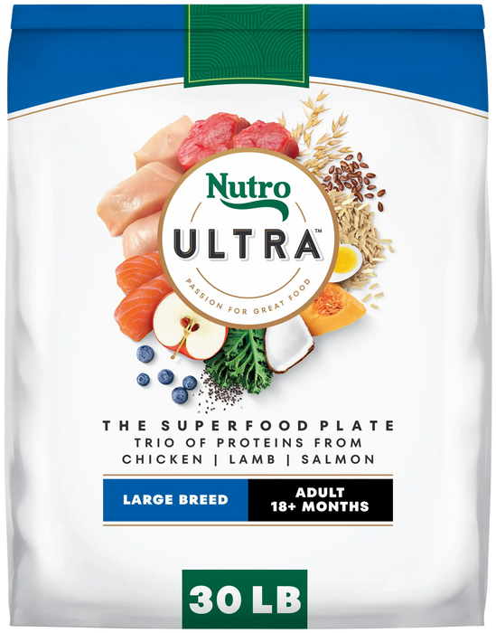 - Contains one (1) 30 lb. bag of NUTRO ULTRA Adult Dry Dog Food with a Trio of Proteins From Chicken, Lamb and Salmon