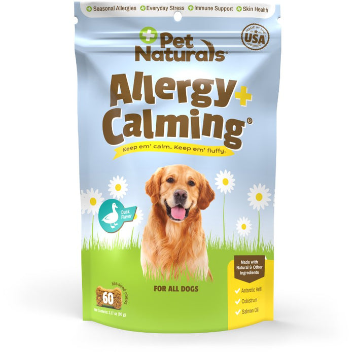 2-in-1 Benefits: Unique dog allergy chews offer support for both seasonal allergies & everyday stress, giving you more for your money. One tasty treat can help address signs of discomfort, including itchy or dry skin, excessive paw licking, redness of ears or paws, and sneezing Trusted Ingredients: Allergy Plus Calming is made with salmon oil & Antarctic krill to nourish dry, itchy skin; quercetin & curcumin to support immunity & healthy inflammation; Colostrum & l-theanine to promote calm behavior; and added probiotics for gut health. Support for Seasonal Allergies: Veterinarian-formulated and recommended supplement for itchy dogs offers support for seasonal & environmental allergies by supporting healthy histamine response.