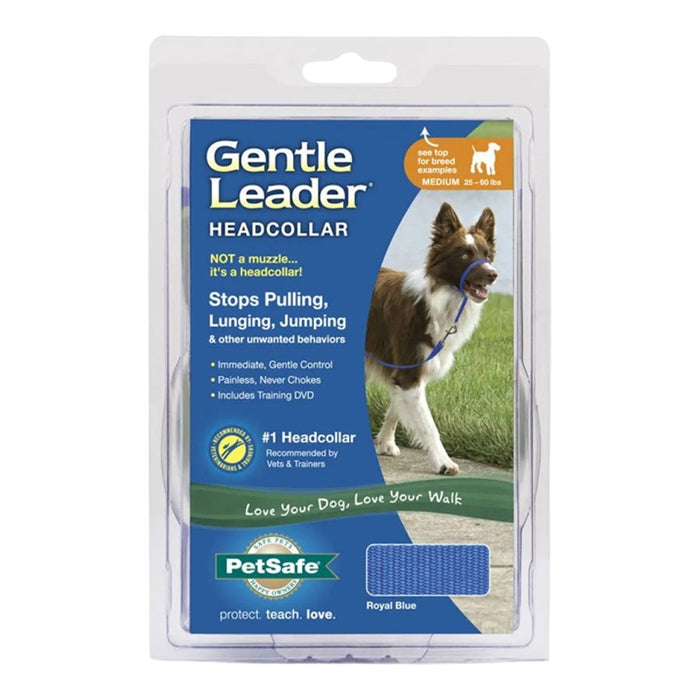The Gentle Leader® Headcollar is an easy-to-fit training tool for teaching your dog better leash manners. When your dog pulls, the Gentle Leader Headcollar gently moves his head and body back towards you. This effectively refocuses his attention to you and off the squirrel, dog, stranger, or other distraction. You can easily train your dog to heel using the Gentle Leader Headcollar plus your preferred training method. Once your dog has learned to let you lead walks, you might only need to use the Gentle Leader Headcollar as a backup during situations when you'll need extra control, like at the vet or dog park.
