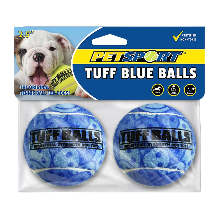 Petsport Tuff Blue Balls are industrial strength tennis balls made especially for dogs that are tough chewers. Size: 2.5" diameter.