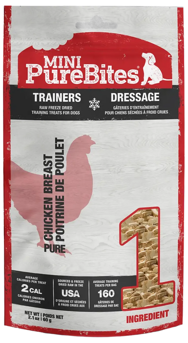 PureBites Mini-Trainers Chicken Breast Treats are a healthy, protein-packed snack made from 100% pure chicken breast—nothing else. Freeze-dried to preserve flavor, nutrients, and aroma, these bite-sized best dog treats are perfect for training or rewarding dogs of all sizes. Low in calories, high in flavor, and free from fillers or preservatives, PureBites dog treats offer simple, natural goodness your dog will love.