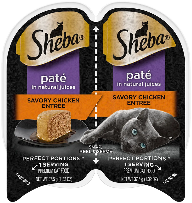 The Sheba Perfect Portions Pate Wet Cat Food Savory Chicken is an easy way to give your cat a fresh meal every time. This premium Sheba Perfect Portions pate wet cat food is made with real chicken for a taste cats love. Many owners feel it is the best cat wet food because it is grain-free and made with quality ingredients. You can trust the delicious recipe of Sheba Perfect Portions Pate Wet Cat Food to satisfy your cat.