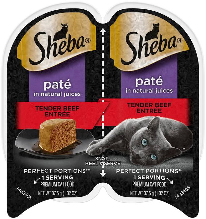 The Sheba Perfect Portions Pate Wet Cat Food Tender Beef is an easy way to serve your cat a fresh meal every time. This premium Sheba Perfect Portions pate wet cat food is made with real beef for a taste that cats love. Many owners feel it is the best cat wet food because it is grain-free and made with quality ingredients. You can trust the delicious recipe of Sheba Perfect Portions Pate Wet Cat Food to satisfy your cat.