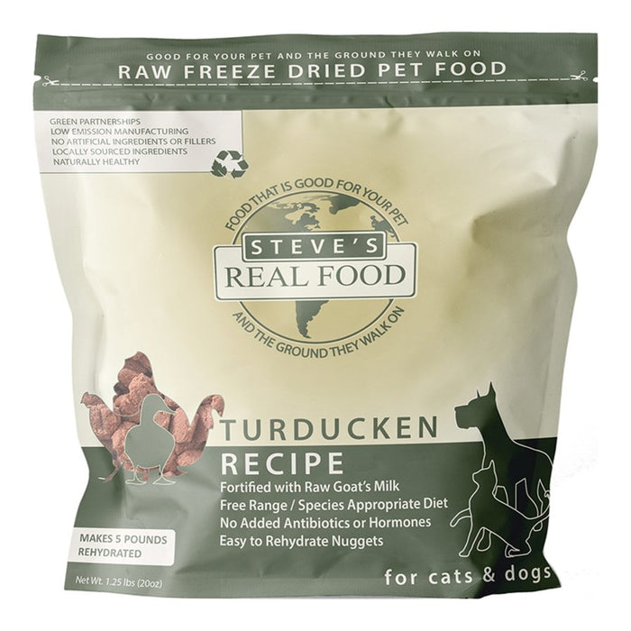 Steve's Real Food Freeze-Dried Nuggets Raw Dog & Cat Food Turducken Recipe 1.25-lb