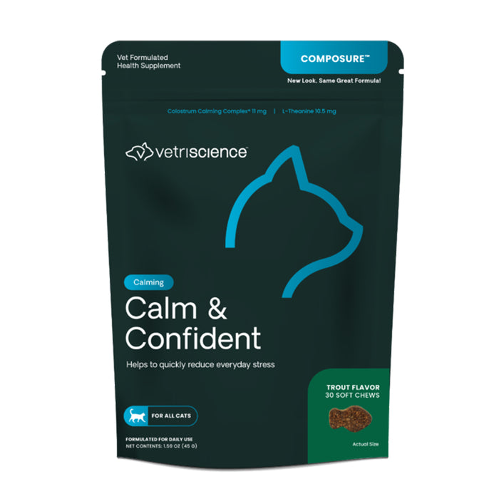 Introducing VetriScience Calming Supplement, premium cat vitamin supplements made to promote relaxation and reduce stress in your cat friend. These chews feature a delicious trout flavor, ensuring your cat eagerly anticipates their calming treat. Perfect for stressful situations like vet visits, travel, or changes in routine, these chews help maintain your cat's composure. Believe VetriScience Calming Supplement provides effective, gentle support for your cat's well-being.