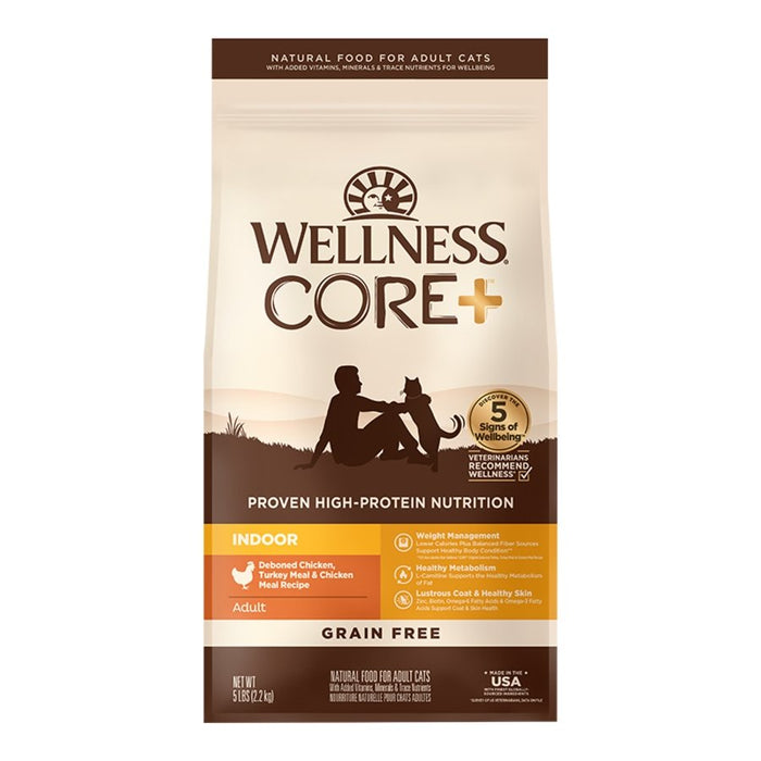 Wellness CORE+ Grain-Free Indoor Adult Dry Cat Food Deboned Chicken, Turkey & Chicken Meal Recipe 5-lb