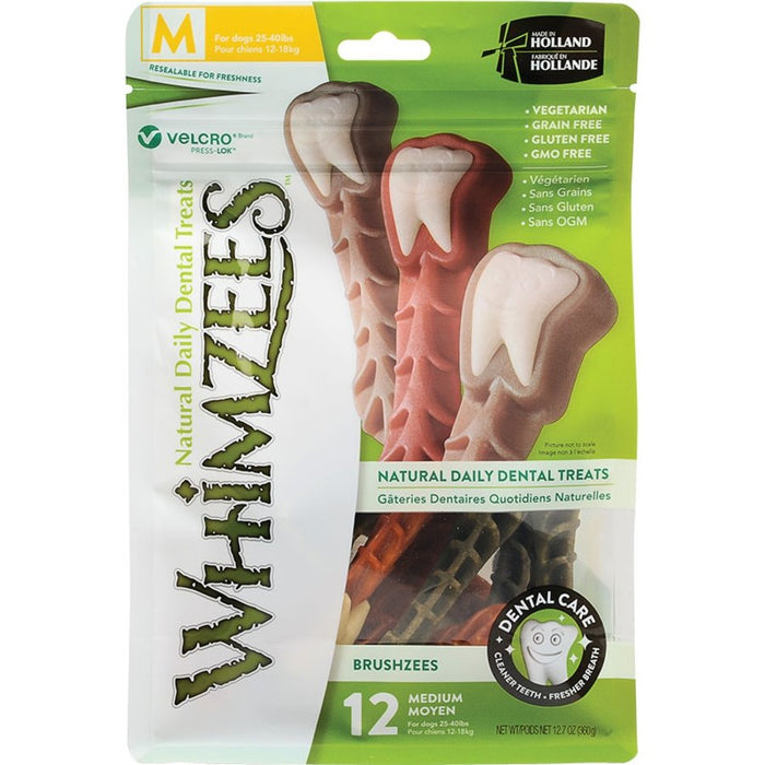 Whimzees Brushzees Natural Dental Dog Treats Medium 12 Count 12.7-oz