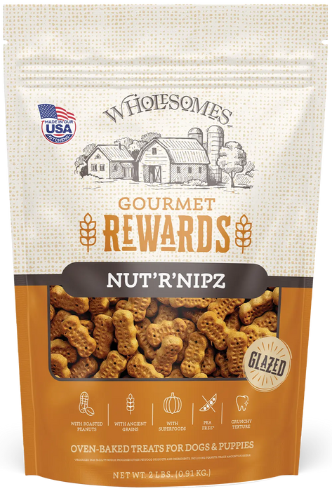 Wholesomes Gourmet Rewards Nut'R'Nipz Biscuits Oven-Baked Dog Treats Peanut Butter 2-lb