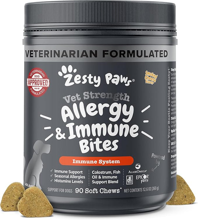 Zesty Paws Vet Strength Allergy & Immune Bites Soft Chews for Dogs Smoked Cheese 90 Count 12.6-oz