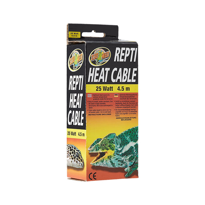 Keep your reptile's terrarium warm and cozy with the Zoo Med Repti Heat Cable. This 14.75ft long heat cable provides a reliable heat source for your reptiles and Zoo Med Reptile Products, ensuring that they stay comfortable and healthy. The 25W power output is perfect for maintaining the ideal temperature for various reptile species, promoting proper digestion and overall well-being. The heat cable is flexible and can be easily routed throughout the terrarium to create the desired temperature gradient. It's an excellent choice for providing supplemental heat for reptiles that require specific basking spots or additional warmth during cooler periods. Accessories for reptiles: Keep your scaly friend happy and content with the Zoo Med Repti Heat Cable.