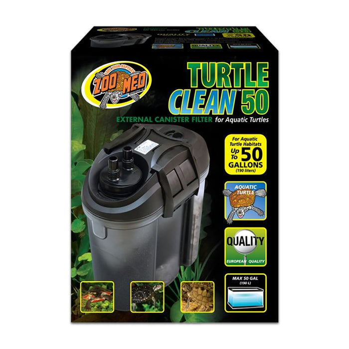 The Zoo Med Turtle Clean External Canister Filter is a high-performance filtration system designed specifically for turtle tanks and other aquatic habitats. This reliable and efficient filter helps maintain clean and clear water by removing debris, waste, and harmful impurities. It provides multi-stage filtration, including mechanical, biological, and chemical filtration, to ensure optimal water quality for your turtles and aquatic pets. The filter is available in two sizes: 30 gallon and 50 gallon, allowing you to choose the appropriate size for your tank. With its quiet operation and easy-to-use design, the Zoo Med Turtle Clean External Canister Filter is an essential tool for keeping your turtle's habitat clean and healthy.